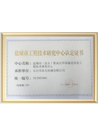 鹽城市工程技術(shù)研究中心認(rèn)定證書
